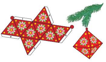 5. Ялинкові прикраси з паперу. У комплекті є шаблон янгола, якого можна створити без клею, та цікаві об'ємні паперові іграшки.