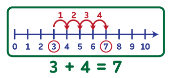 Робіть із дитиною багато вправ на додавання та віднімання, де замість чисел є малюнки. Згодом дедалі більше завдань пропонуйте дитині записувати за допомогою числового виразу. Навчайте дитину додавати та віднімати, використовуючи числовий промінь чи лінійку. Поясніть, що треба «стрибати» від числа до числа.