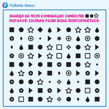 - завдання на розвиток зорової уваги – здатність фокусуватися на важливому і схоплювати максимальну кількість необхідних деталей за допомогою зору;