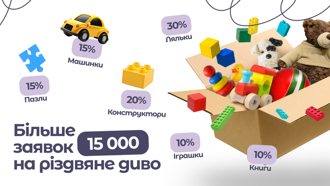 Наразі на цій спеціально створеній платформі вже зареєстровано понад 15 тисяч запитів від батьків та законних опікунів, які зараз не можуть собі дозволити придбати дітям іграшки. Переважно це сім'ї військових, ВПО, багатодітні родини.