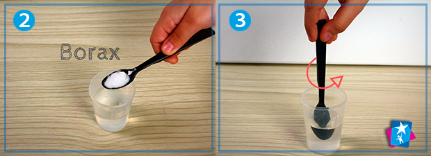Підготуйте 50 мл теплої води і додайте туди чайну ложку бури, добре перемішайте та відставте убік. Бура — порошкова речовина, також відома як Тетраборат Натрію (Na2B4O7), він же Borax англійською. Бура продається в аптеках і відома своєю легкою в’яжучою і антисептичною дією для обробки шкіри і слизових оболонок. Це один з найважливіших компонентів для згущування слайму.
