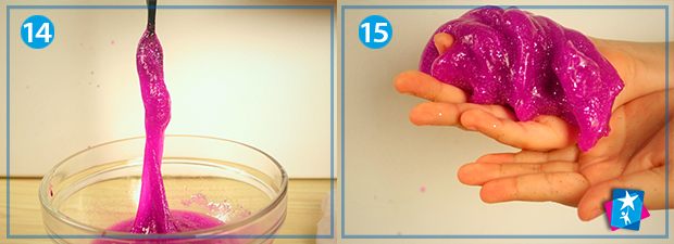 Коли паста буде готова, оцініть її консистенцію: можливо вам захочеться додати ще якогось компоненту для корекції властивостей слайму. А тепер із задоволенням пограйтеся іграшкою та поспостерігайте за її реакцією на ваші дотики і рухи.