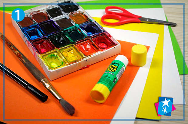 Скомпонуємо акварельний фон та елементи з кольорового картону в аплікацію на осінню тему
