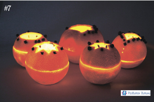 Ця робота зачарує вас і вашу дитину творчим процесом та результатом. Абажур створить в домі затишну і комфортну атмосферу, апельсинова шкірка разом з гвоздикою наповнить приміщення дивовижним ароматом. Ваше маля зрозуміє, що природні матеріали — безкінечне джерело для творчих проектів, тому слід добре подумати перед тим, як відправляти щось на смітник.