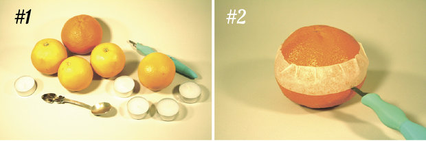 Вибираємо в магазині апельсини й мандарин. Головний критерій відбору — симетрична форма і хороша шкірка. Купуємо набір маленьких свічок-таблеток.