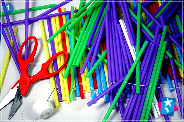 Коли у вас буде потрібна кількість оформлених "ниток", прив’яжіть їх до простого круглого карнизу, бамбукової палиці або з'єднайте між собою м'яким рухомим зчепленням із залишків трубочок на нитках.