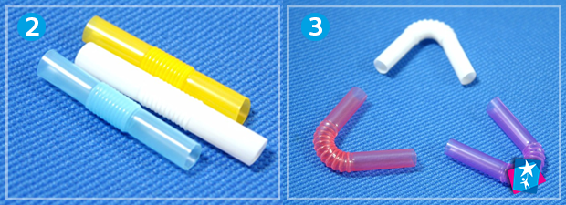 Візьміть набір пластикових трубочок для коктейлів. Відріжте ту частину, що згинається: з запасом приблизно по 5 — 7 міліметрів з кожного боку навколо "гармошки". Три відрізаних елементи поєднайте у одну трикутну ланку ланцюга. Щоб створення ланки проходило легко, манікюрними ножицями зробіть надрізи на тих ділянках, що будуть вставлятися всередину трубочки.