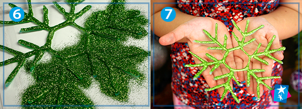 Наступний крок — змастіть клеєм ПВА поверхню фігурки. Притрусіть зверху гліттером (як варіант — пофарбуйте акрилом або лаком для нігтів). Дайте висохнути. Ось і все, прикраса готова!