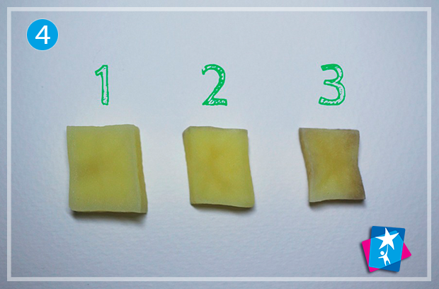 Через декілька годин можна перевіряти, як змінилися наші картопляні кубики. І ось які висновки можна зробити: