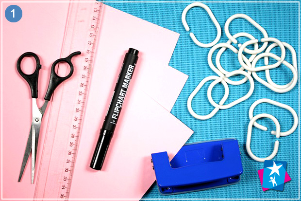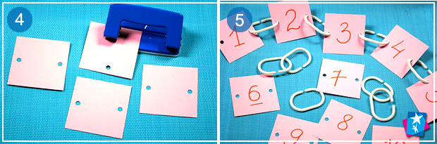 У кожному квадратику пробийте по два отвори, щоб їх можна було з'єднати в довгий горизонтальний ланцюг.