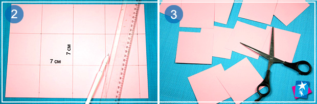 Накресліть на форматі А4 дванадцять квадратів 7х7 см та виріжте їх.