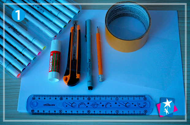 До клейкої стрічки підклейте чистий аркуш 15х9 см (для зручності краще на кілька міліметрів менший). В подальшому ця сторінка стане «потайним дном» нашої конструкції.