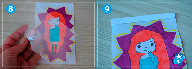 Плівку треба з'єднати з ілюстрацією наступним чином: у верхній частині приклеїти двосторонній скотч, а потім широкою смужкою (2 см) склеїти два шари.