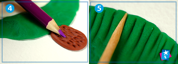 Тепер додамо трохи фактури. Натискайте олівцем на стовбур, імітуючи нерівність поверхні. А потім візьміть зубочистку, переверніть роботу і починайте часто і густо натискати, щоб отримати ефект безлічі голочок.