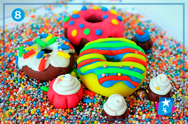 Приготуйте з дитиною десерт для іграшок. Яскравий пластиліновий пончик робиться за 3 хвилини!