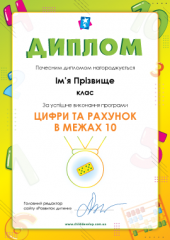Після виконання програми ви можете нагородити дитину спеціальним дипломом, який стане нагородою за старанне та вправне виконання завдань та підтверджуватиме набуття дитиною таких необхідних для подальшого навчання поведінкових навичок, як старанність, охайність і самодисципліна.