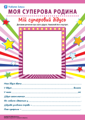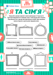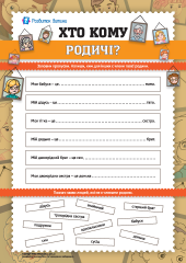 Виконання завдань зошита допоможе дитині формувати уявлення про родинні зв’язки, відповідальність кожного за стосунки в сім’ї. Написати компліменти для тата, взяти в дідуся й бабусі інтерв’ю – ці та інші завдання вчитимуть дитину шанобливого ставлення до рідних, розкриватимуть цінність сім’ї для людини. Завдання зі створення портретів розвиватимуть творчість, уміння описувати зовнішність рідних людей тощо.