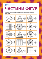 Виконуючи завдання цього робочого зошита, діти зможуть поглибити уявлення про частини цілого, усвідомити взаємозв’язок дробів і дії ділення, удосконалюватимуть обчислювальні навички.