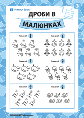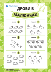 Виконання завдань робочого зошита «Вивчаємо дроби» впродовж двох тижнів допоможе дитині ознайомитися з поняттями «дріб», «чисельник» і «знаменник», усвідомити взаємозв’язок між чисельником і знаменником, учитися визначати дроби, які дорівнюють 1, порівнювати та додавати звичайні дроби. ..