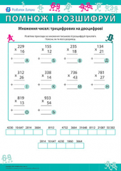 Завдання робочого зошита мають на меті допомогти дитині вчитися виконувати письмове множення багатоцифрового числа на одноцифрове й багатоцифрове число, розвинути обчислювальні навички. ..