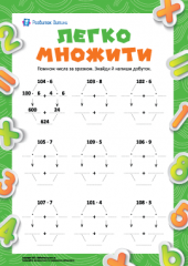 Завдання в зошиті розміщено від простіших до більш складних. Завдяки такій структурі зошит можна використати для організації диференційованого навчання. Головне – упевнитися, що навички письмового множення міцно сформовані, дитина усвідомлює принцип множення у стовпчик.