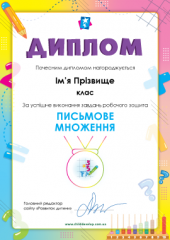 Коли дитина опрацює зошит, рекомендовано нагородити її спеціальним дипломом, який підтверджуватиме засвоєння нею таблиці множення.