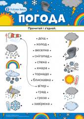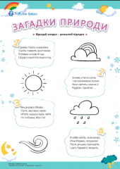Тематична добірка завдань для дітей від 6 років, що поглибить знання малечі про погоду в різні пори року, тренуватиме увагу, зорове сприйняття, дрібну моторику, уяву та креативність. Зошит містить дидактичні ігри, загадки, логічні завдання, лабіринти, розмальовки, завдання з малювання й аплікації, письма і читання, математичні вправи. Завдання зошита розвиватимуть логічне мислення в процесі сприйняття дійсності, тренуватимуть зоровий гнозис, увагу та вміння орієнтуватися в навколишньому середовищі, сприятимуть удосконаленнню графомоторних навичок, навчатимуть лічби в межах десяти, поглиблюватимуть словниковий запас, допоможуть закріплювати навичку користуватися ножицями та виховуватимуть любов до творчості. Матеріали робочого зошита навчатимуть дитину розпізнавати різні погодні явища, збагачуватимуть словниковий запас і формуватимуть уявлення про природу і її зміни. Ця добірка завдань допоможе виховувати в дитини старшого дошкільного та молодшого шкільного віку любов до природи й навчання, дасть змогу корисно провести час. Додатково завантажуйте Погодні явища – картки Домана.