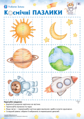 Робочий зошит для дітей від 3-х років із тематичною добіркою завдань, які допоможуть малюкам зануритися у світ космосу, тренуючи графомоторні навички, мовлення, логічне мислення, увагу, дрібну моторику, творчу уяву, уміння класифікувати й узагальнювати поняття, конструювати ціле із частин, порівнювати предмети за розміром, кольором, величиною. Дитина працюватиме з ножицями, пластиліном, пальчиковими фарбами, викладатиме квасолини, вчитиметься малювати прямі горизонтальні та вертикальні лінії, складатиме ракету з геометричних фігур, відгадуватиме загадки. Виконання цих барвистих завдань збагатить знання малечі про космічні об’єкти і планети, розвиватиме спостережливість, зорову та слухову пам'ять, готуватиме руку до письма, тренуватиме навичку аналізувати, порівнювати. Цей комплект зробить дослідження космічної тематики цікавим та корисним для загального розвитку трирічної дитини. Додатково радимо завантажити навчальні інформаційно-класифікаційні картки на тему космосу.