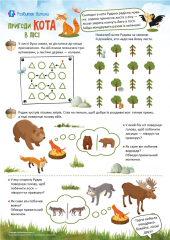 Тематична добірка завдань для дітей від 6 років спрямована на поглиблення знань про лісових тварин та спосіб їхнього існування у світі природи, розвиток у малечі фантазії, логіки, уваги та мислення. Виконуючи завдання робочого зошита, малюки працюватимуть із графічним диктантом, танграмом, розв’язуватимуть логічні задачі, писатимуть, рахуватимуть, вивчатимуть геометричні фігури, малюватимуть, розмальовуватимуть, навчатимуться читати, розгадуватимуть кросворди, створюватимуть аплікацію. Ця діяльність допоможе дітям учитися розрізняти особливості лісових тварин, тренувати зоровий гнозис та увагу, вдосконалювати навичку узагальнення й систематизації знань, розвиватиме уміння визначати ракурс. Також малеча опановуватиме вміння міркувати і мислити логічно, закріплюватиме навик лічби, потренує дрібну моторику, дізнаватиметься про просторові поняття «ліво» та «право», вчитиметься конструювати з геометричних фігур і вирізати ножицями з паперу, спробує створити паперову іграшку власноруч, фантазуватиме, розвиватиме уяву, творчість. Пропонована добірка завдань сприятиме формуванню в дитини старшого дошкільного та молодшого шкільного віку любові до довкілля та навчання, стане основою корисного дозвілля. Додатково радимо завантажити картки з дикими тваринами України.