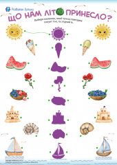 Тематична добірка завдань для дітей від 3 років, спрямована на поглиблення знань про літо та особливості цієї пори року пору, розвиток уваги, зорового сприйняття, дрібної моторики, уяви і креативності. Виконуючи завдання робочого зошита, малюки шукатимуть фрагменти малюнків, зіставлятимуть тіні, виконуватимуть нейрозавдання, розмальовуватимуть, домальовуватимуть, об’єднуватимуть у пари, вирізатимуть, створюватимуть пластилінографію та аплікацію. Така діяльність допоможе дітям учитися вирізняти особливості літа як пори року, збагачуватиме словниковий запас лексикою про літо, закріплюватиме вміння використовувати олівці й пластилін для творчості. Також малеча ознайомиться з базовими геометричними фігурами, тренуватиме здатність зіставляти кольорові об’єкти та їхні тіні, розвиватиме дрібну моторику, зорово-моторну координацію під час вирізання і малювання, збагачуватиме сенсорний досвід, а також активізовуватиме міжпівкульну взаємодію. Пропонована добірка завдань сприятиме формуванню в дитини молодшого дошкільного віку любові до довкілля та навчання, стане основою корисного дозвілля. Додатково радимо завантажити Літо: картки Домана та Літній декор.