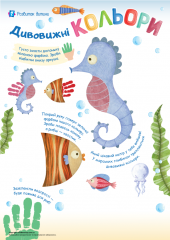 Тематична добірка завдань для дітей від 2-х років, створена спеціально для допитливих малюків та їхнього ознайомлення з дивовижними істотами, які живуть у водному світі. Завдання робочого зошита спрямовані на розвиток мовлення, уваги, логічного мислення, дрібної моторики. Виконуючи завдання, малята розмальовуватимуть, малюватимуть олівцями та фарбами, учитимуться користуватися ножицями, працюватимуть із пластиліном, приклеюватимуть паперові деталі, гратимуть у гру «3-й зайвий». Така ігрова і пізнавальна діяльність не тільки допоможе здійснити уявну мандрівку підводним світом, а й формуватиме початкові графомоторні навички, творчість та креативність, любов до довкілля й навчання, дасть змогу корисно провести час. Додатково завантажуйте Морські жителі – картки Домана та Мешканці прісних водойм – картки Домана.
