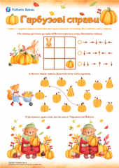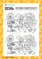 Тематична добірка завдань для дітей від 5 років спрямована на поглиблення знань про осінь та особливості цієї пори року, допоможе ознайомитися з назвами осінніх місяців, тренуватиме увагу, мислення, дрібну моторику й креативність. Виконуючи завдання робочого зошита, малюки створюватимуть паперопластичну аплікацію та саморобку, розмальовуватимуть, шукатимуть однакові предмети та відмінності, працюватимуть із нісенітницями, лічитимуть, малюватимуть, проходитимуть лабіринти, розв’язуватимуть логічні завдання, готуватимуть руку до письма, розвиватимуть зв’язне мовлення. Така діяльність допоможе дітям учитися вирізняти особливості осені як пори року. Діти збагачуватимуть словниковий запас лексикою про осінь, формуватимуть елементарні математичні уявлення, тренуватимуть графомоторні навички, розвиватимуть дрібну моторику, зорово-моторну координацію. Також малеча потренує вміння користуватися ножицями, вивчатиме назви місяців за допомогою завдань-розмальовок, пригадає відомості між літніми та осінніми аксесуарами, розвиватиме спостережливість і пам’ять, удосконалюватиме ерудованість, розв’язуючи логічні задачі. Пропонована добірка завдань сприятиме формуванню в дитини старшого дошкільного віку любові до довкілля та навчання, стане основою корисного дозвілля. Додатково радимо завантажити Осінь: картки Домана, Осінній декор та Осінні букви: шаблони для оформлення та декорування.