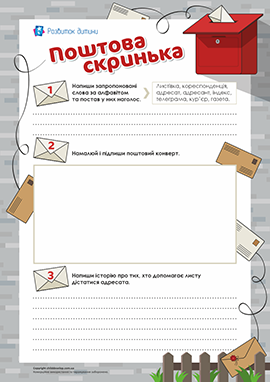Завдання сприятиме закріпленню знань про правопис окремих слів. На двох аркушах намальовано сторінки словничка зі словами, правопис яких потрібно запам’ятати. Дитині пропонується переписати запропоновані слова і поставити в них наголос, за бажанням намалювати малюнок до кожного слова. Рекомендовано наголос перевірити за допомогою словника. Виконуючи завдання, дитина розширюватиме словниковий запас, потренується правильно вимовляти окремі слова. Створюючи малюнки, дитина запам’ятовуватиме слова, до яких їх намальовано. Виконання завдання сприятиме формуванню мовної компетентності дитини, уваги, уміння працювати зі словником.