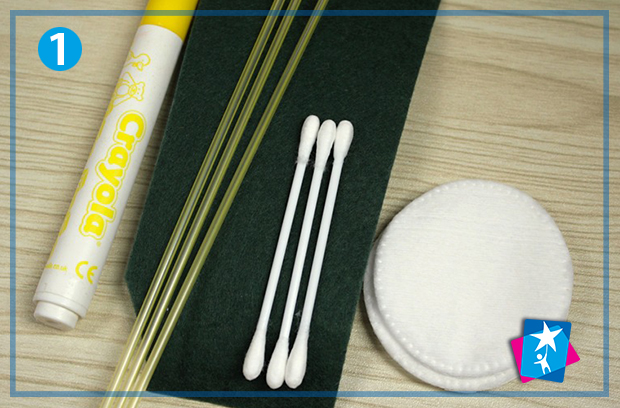 За допомогою ватних дисків, ватних паличок, трубочок та шматочка зеленого фетру зробимо прості квіти кали своїми руками. Додатково знадобляться жовтий фломастер, ножиці і клей (або степлер).